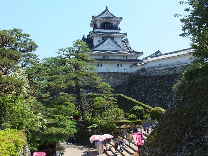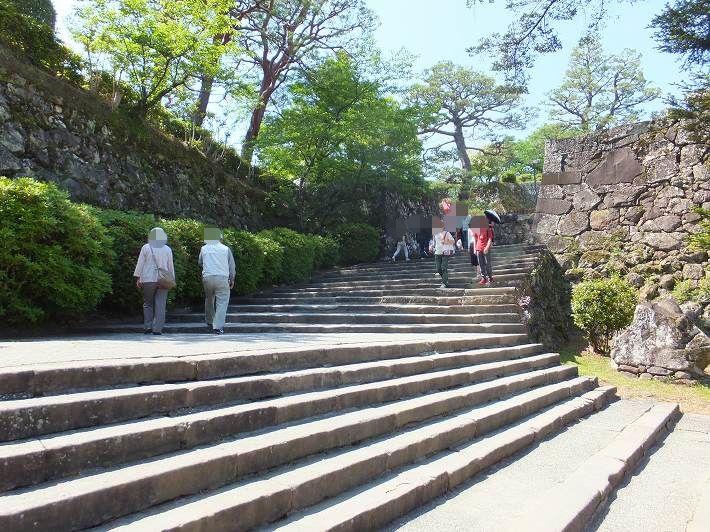 右に濠を見ながら 国寶高知城の石碑が建つ大手門をくぐります。