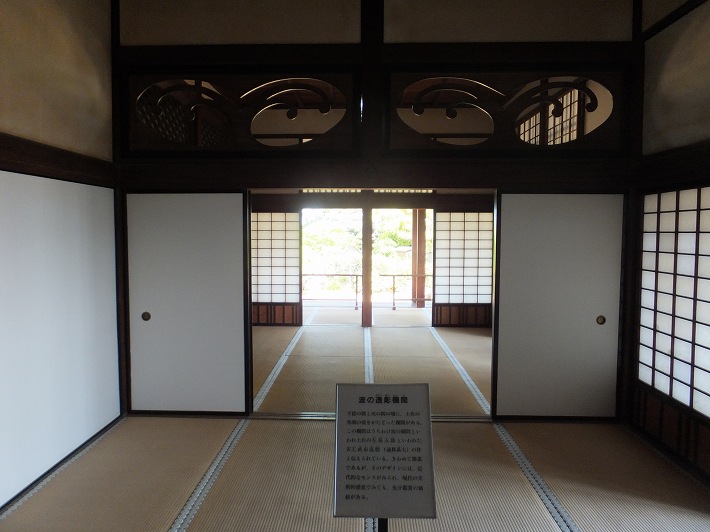 (本丸御殿、パネルは 波の透彫欄間の説明)