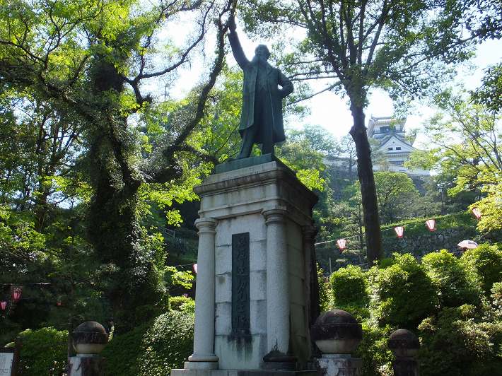 大手門をくぐった所の広場に板垣退助の像が建っていて・・