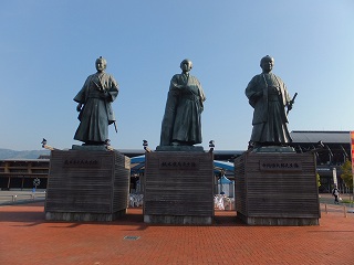 武市半平太・坂本龍馬・中岡慎太郎の像が建っています。