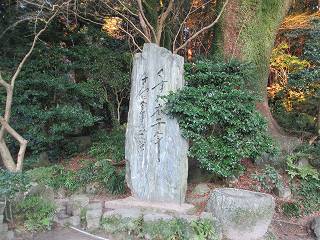 その後、心字池に架かる太鼓橋を渡って「東風吹かば・・」の歌碑を見に行ってみました。