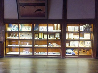 衝立の向かいに 所蔵品を展示した棚と漢詩が書かれた屏風があります。