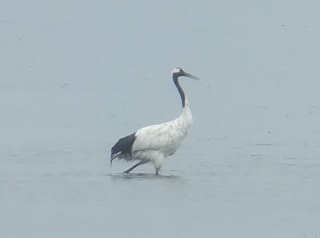 (沼でエサを探す丹頂鶴)
