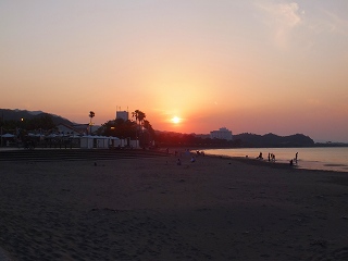 参拝を終える頃には夕日が沈んで、青島海岸に 青島ビーチパークのネオンが灯ってました。