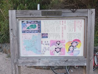 島に入った所に 青島の文化財(亜熱帯性植物群落・隆起海床と奇形波蝕痕)の説明と