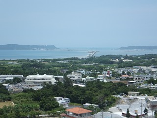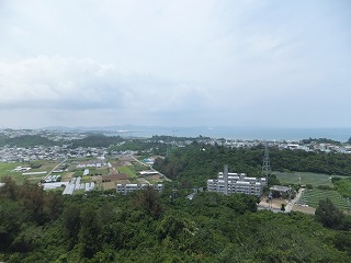 (世界遺産の案内付近から見た勝連城跡)