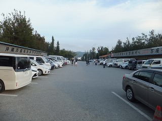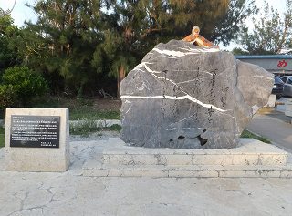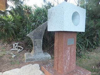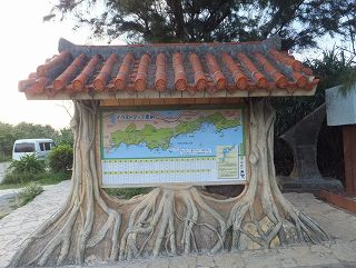 (駐車場にある 恩納のイラストマップ)_________(同じく 万座毛のオブジェ)