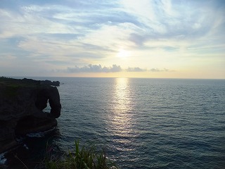 万座毛は 海岸線に沈む夕日が美しいことでも有名です。