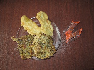 (道の駅許田で買ったモズクの天ぷら)