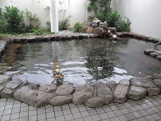 ポーラなど4種類あって、中央に15人が入れるタイル張りの浴槽がありました。