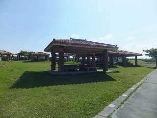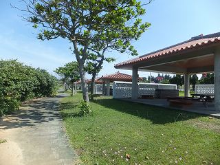 残波岬には、休日に 家族連れやカップルでにぎわうレストランとバーベキューができる複合