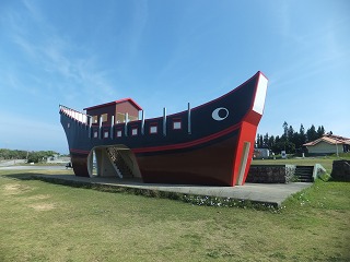 残波岬いこいの広場には 進貢船の模型と高さ8.75メートル、長さ7.8メートルの日本一