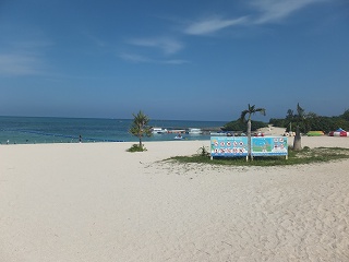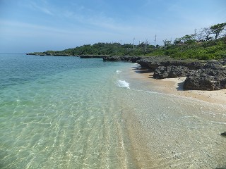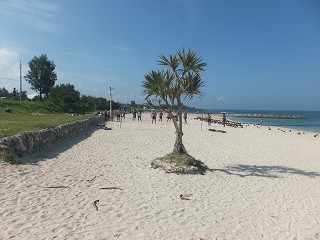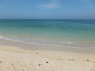 この浜は海水浴場になっているのですが、沖縄の人は あまり泳がないそうです。