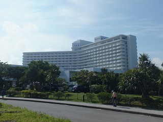 いこいの広場から東を見ると、私が宿泊している残波ホテルが見えました。