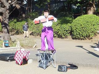 さくら通りでは 数人の大道芸人が技を披露してました。