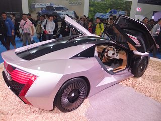 _(木から作ったと思えない未来の車)___________(リアから見た運転席)
