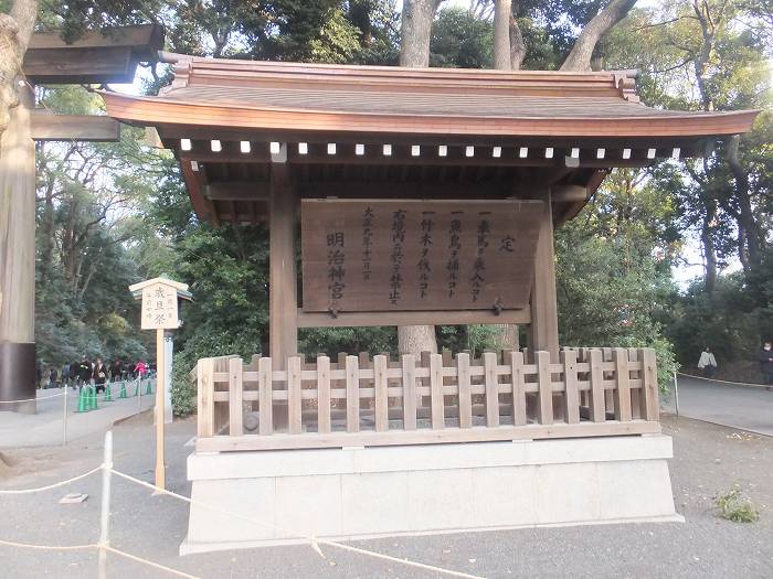 鳥居の所に「境内に於いて 車馬を乗り入れること・魚鳥を捕ること・竹木を伐ることを禁ず」