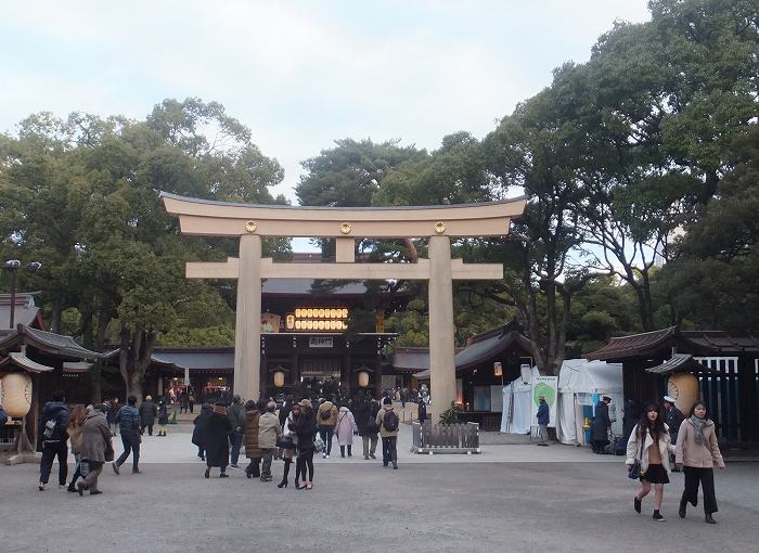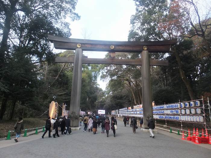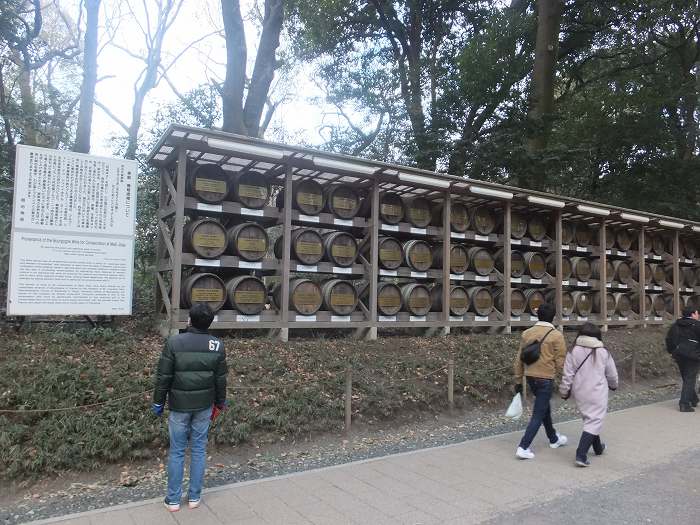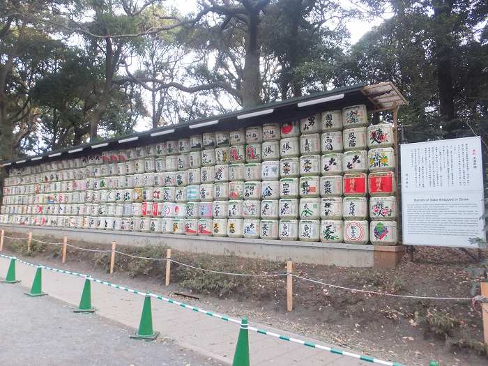 南参道を歩いて行くと、左にワイン 右に日本酒の奉献された銘柄の樽が並んでいて・・