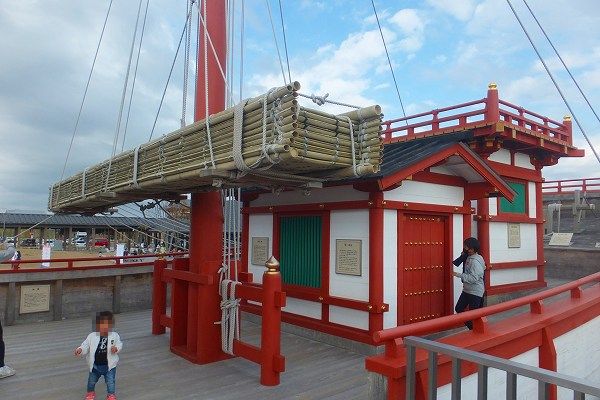 朱雀門広場の一番奥にある池には 遣唐使船が復元されています。