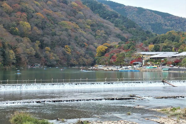 大河内山荘から東に下りて行くと トロッコ嵐山の駅前に池があって・・