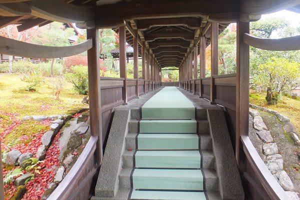 曹源池から多宝殿までは、靴を脱いで 屋根付きの廊下を歩きます。