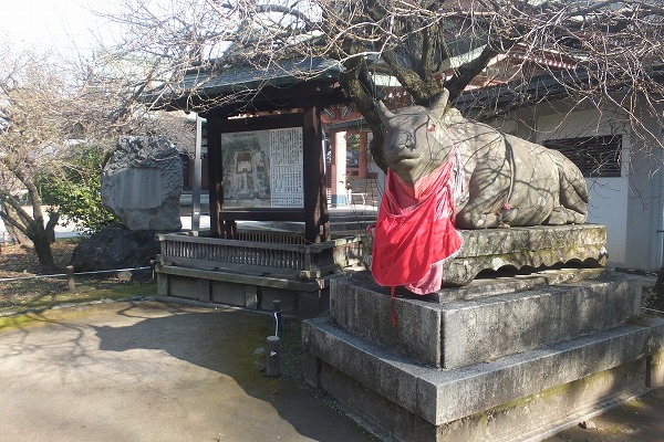 本殿の左後ろに 絵馬掛所があって、その奥に 一願成就の お牛さんの