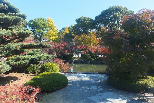 五重塔から 瓢箪池がある庭園を歩いて拝観受付に戻ります。