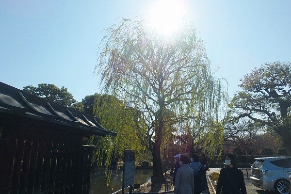 宝殿の堀に 小野道風ゆかりの柳があります。