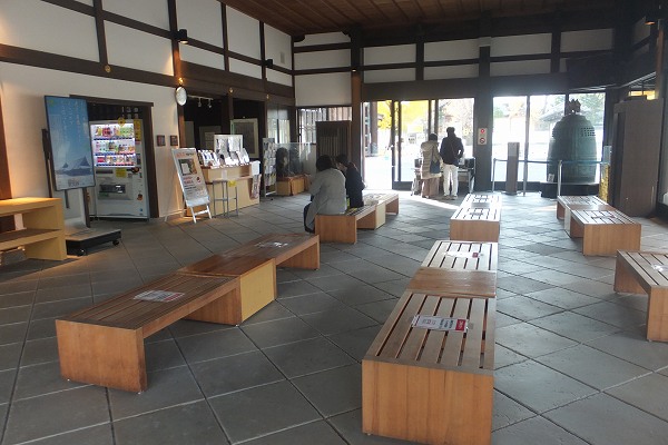 畳が敷かれた外陣では 一度に800名以上が参拝でき、内陣中央に