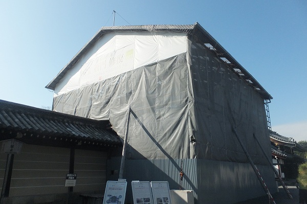 この時は修復工事中で、工事用の建屋に覆われていました。