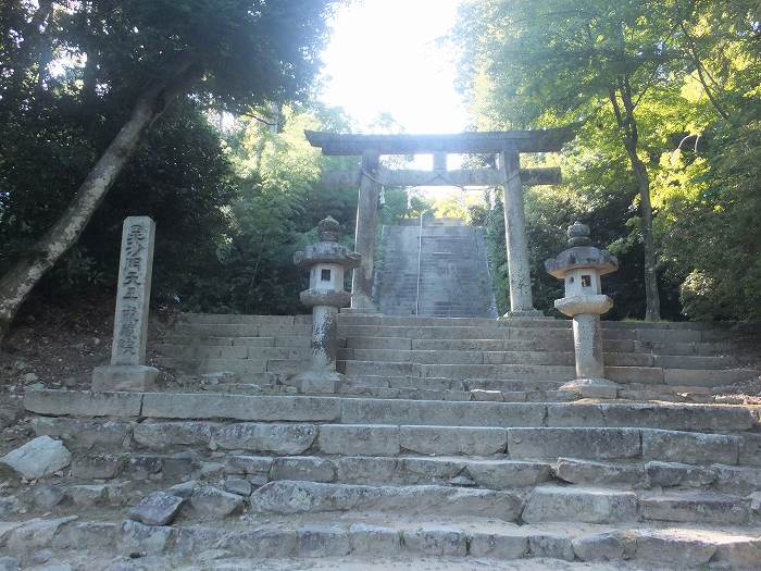 楽に行ける坂本ケーブル乗り場からの参道を知らずに、神社の下にある駐車場から参拝