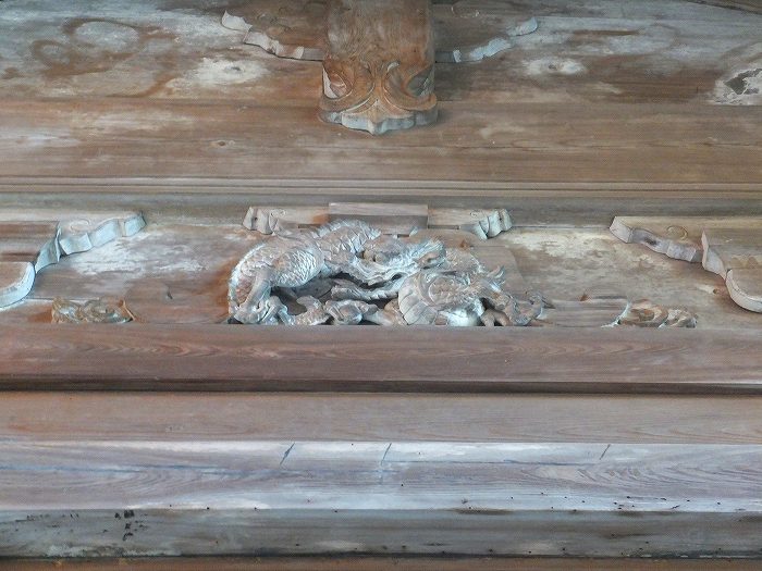 閼伽井屋の覆屋の正面上部にある左甚五郎作と伝えられる龍は「むかし この龍が