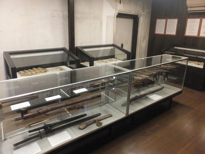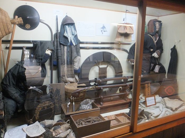 屋敷の一階には 当時の武具や忍者が用いた道具が多数展示されています。