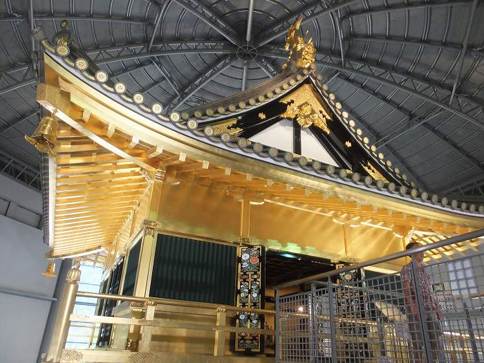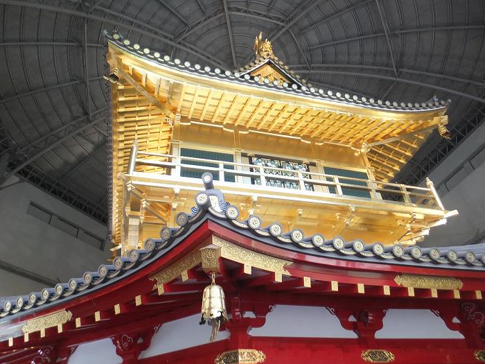 見上げると ドーム内に復元された安土城の天守(5階と6階)があります。