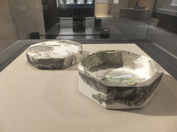 (入り口の右奥に並ぶ 高級感のある焼き物)