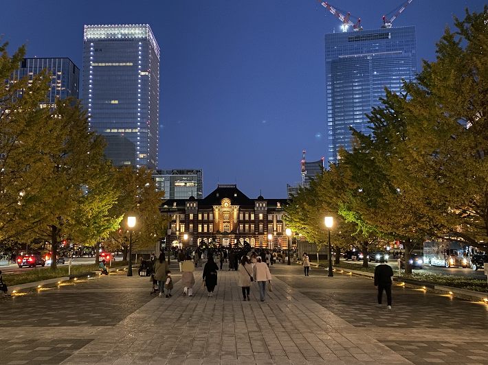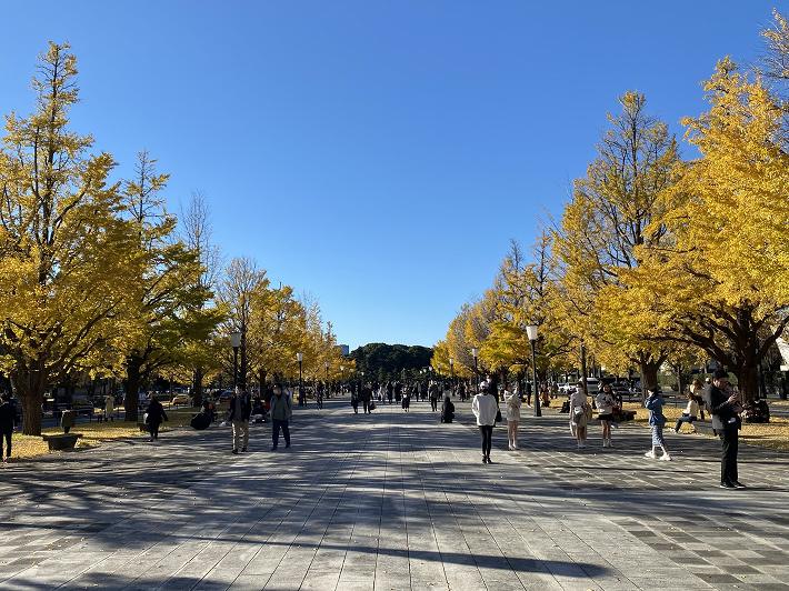 (東京駅から見た行幸通りの銀杏並木