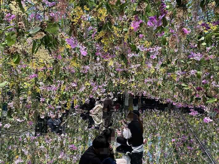 | 超巨大な4つの作品空間と2つの庭園からなる「水に入るミュージアム と花と一体化する庭園 」。 人々は、他者と共に「Body Immersive」というコンセプトの超 巨大な作品に身体ごと没入することによって、身体と作品との 境界を曖昧にし、自分と他者と世界との境界を連続的なものに変え、 私たちと世界との境界のない新しい関係を模索する。 はだしとなって、身体ごと没入し、他者と共に世界と一体となる。 ___________________ (Webサイトより)