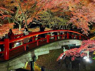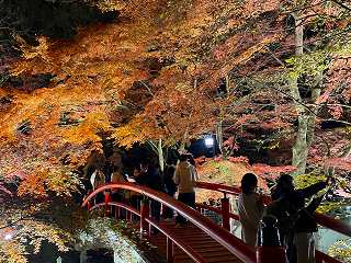 旅館の夕食を食べた後 河鹿橋のライトアップを見てきました。