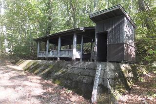 (登山口近くの駐車場、2本の木の下にトイレ)