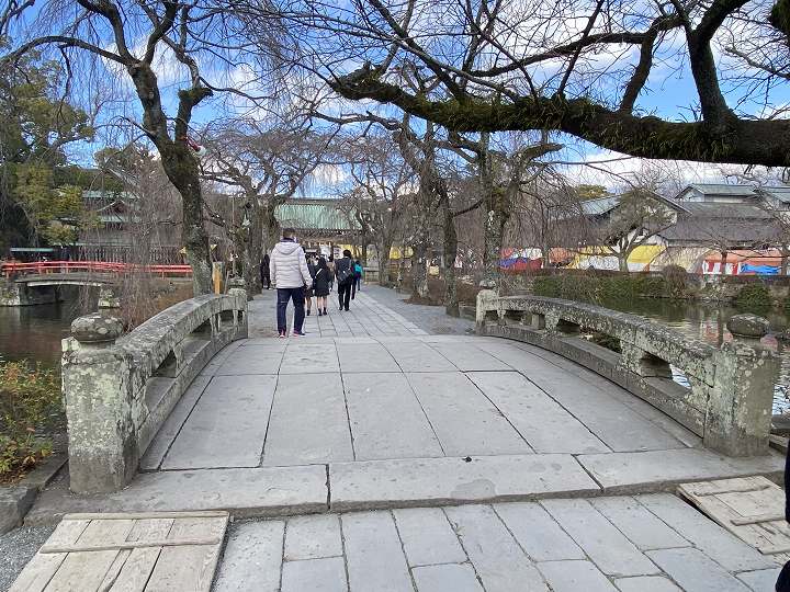 に架かる石橋を渡りますが、参道には沢山の桜があるので 桜が咲く