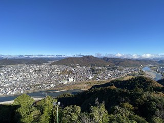 (山麓にある織田信長居館跡と菊花まつり)