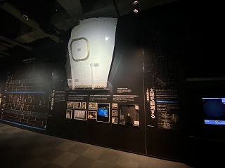 (1階に展示されたロケットエンジン)