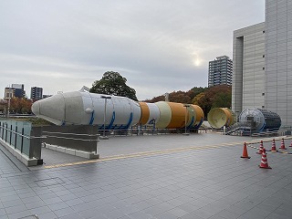 (屋外展示の国産大型ロケット「H-UB」実験機)