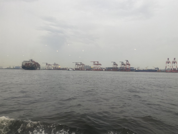 出航すると間もなく 右にコンテナ埠頭が見えて、40分ほどで東京ゲートブリッジをくぐります。