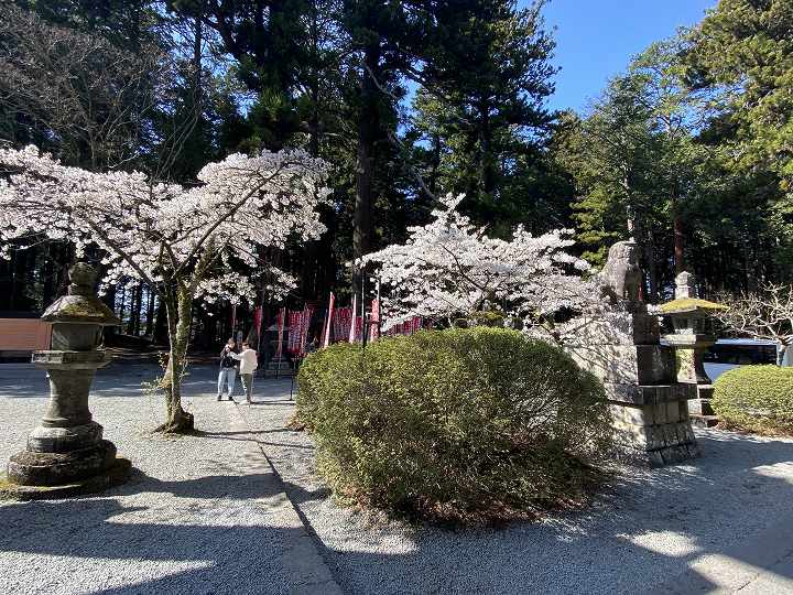 (境内の桜と狛犬)