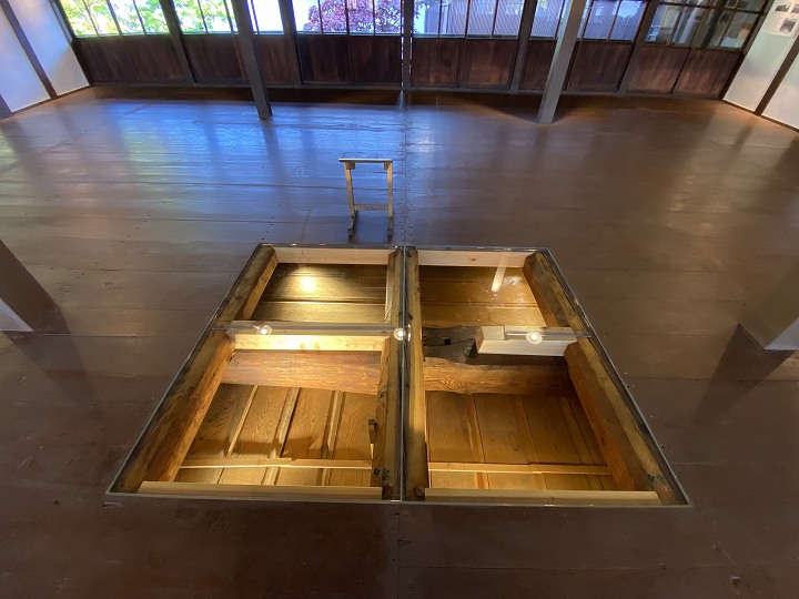 (2階の床から見る梁の構造)