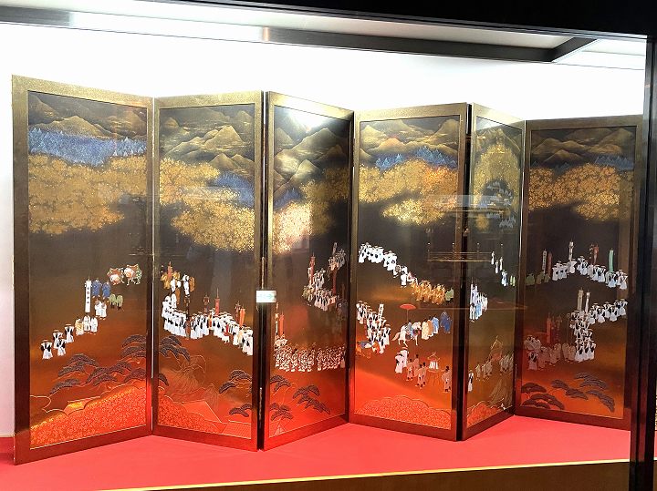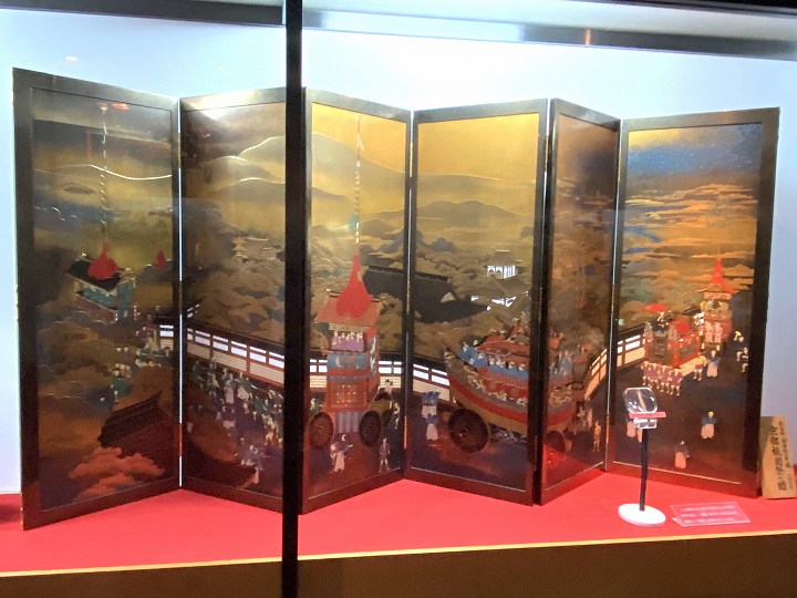 (輪島塗金蒔絵屏風・京都祇園祭の図)