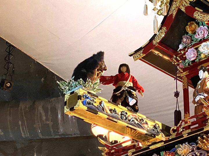夫婦獅子、おかめとひょとこ、三体の人形も からくり仕掛けで動きます。