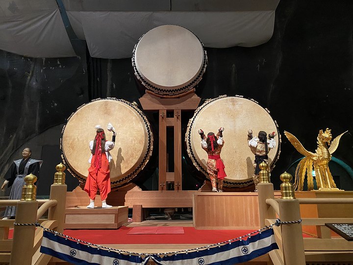 (三体の人形が叩く世界一の大太鼓)