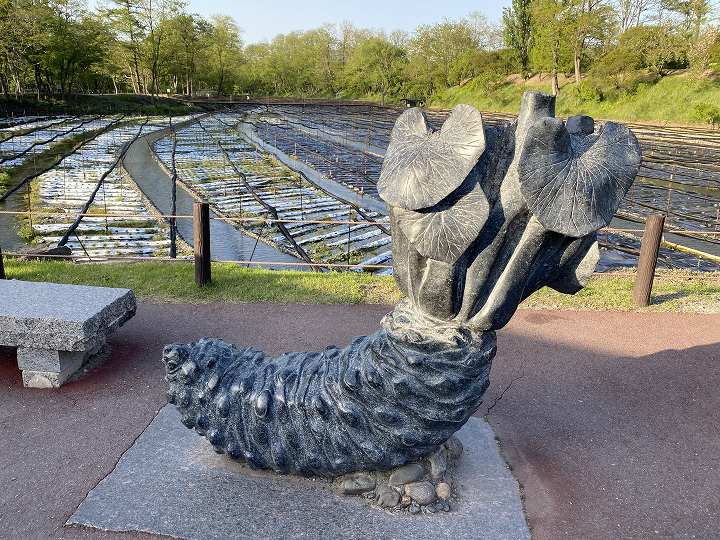 (水車の前にある八面大王像)